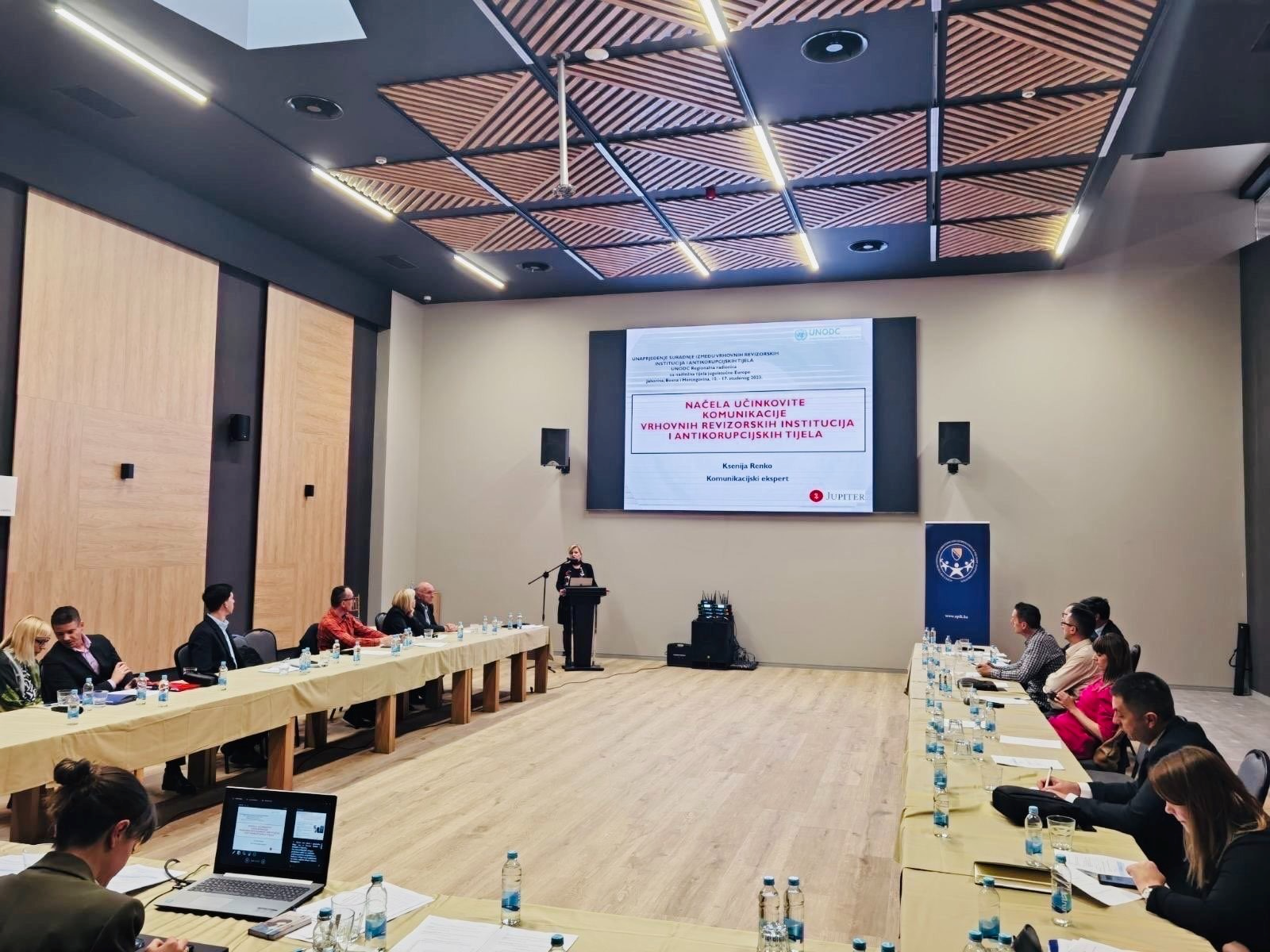 Corruption is a complex phenomenon, cross-cutting different sectors of a society and posing a serious threat to the countries` economic development. The importance of inter-agency collaboration and national and regional alliances of relevant authorities in joining the efforts to prevent and counter corruption is widely acknowledged today. The regional event gathered participants from supreme audit institutions and anti-corruption bodies from eight South Eastern European countries: Albania, Bosnia and Herzegovina, Bulgaria, Croatia, Montenegro, North Macedonia, Romania and Serbia. It was part of a series of training workshops being delivered among the INTOSAI regional group of authorities to leverage the knowledge and experience of the relevant authorities from countries in the Southeast Europe region and foster informed decisions on enhancing collaborations. Ksenija Renko from JUPITER Strategic Consulting, Croatia, provided participants with principles and examples of effective communication for supreme audit institutions and anti-corruption bodies and encouraged participants to share examples and good practices in the open discussion model.